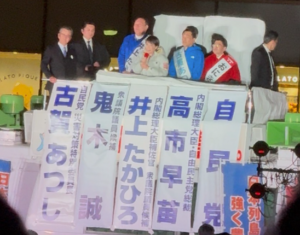 高市早苗自民党総裁も応援に駆けつけ、力強いメッセージをいただきました。我々福岡県理学療法士連盟も応援しております。