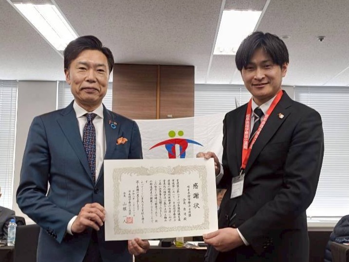 先の参議院議員通常選挙において、各都道府県の理学療法士会員に対して組織内議員の得票数が上回った都道府県に感謝状が手渡されました。当連盟も高い得票率であったことから感謝状をいただくことができました。ひとえに皆さまのご理解ご協力あっての結果でございます。あらためて多くの皆さまに感謝申し上げます。今後も引き続き岐阜県理学療法士会・日本理学療法士協会の政策要望を実現するためのパイプ役となれるよう努力してまいります。