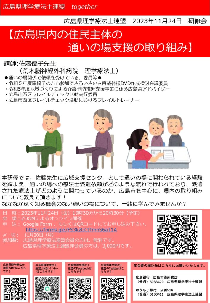 【広島県理学療法士連盟主催 研修会】 テーマ:⽇本代表トレーナーが教える! スポーツテーピングの基礎 第2弾 (*第1弾と同じ内容です) 講師:島俊也(おかもと整形外科クリニック、訪問看護ステーション…