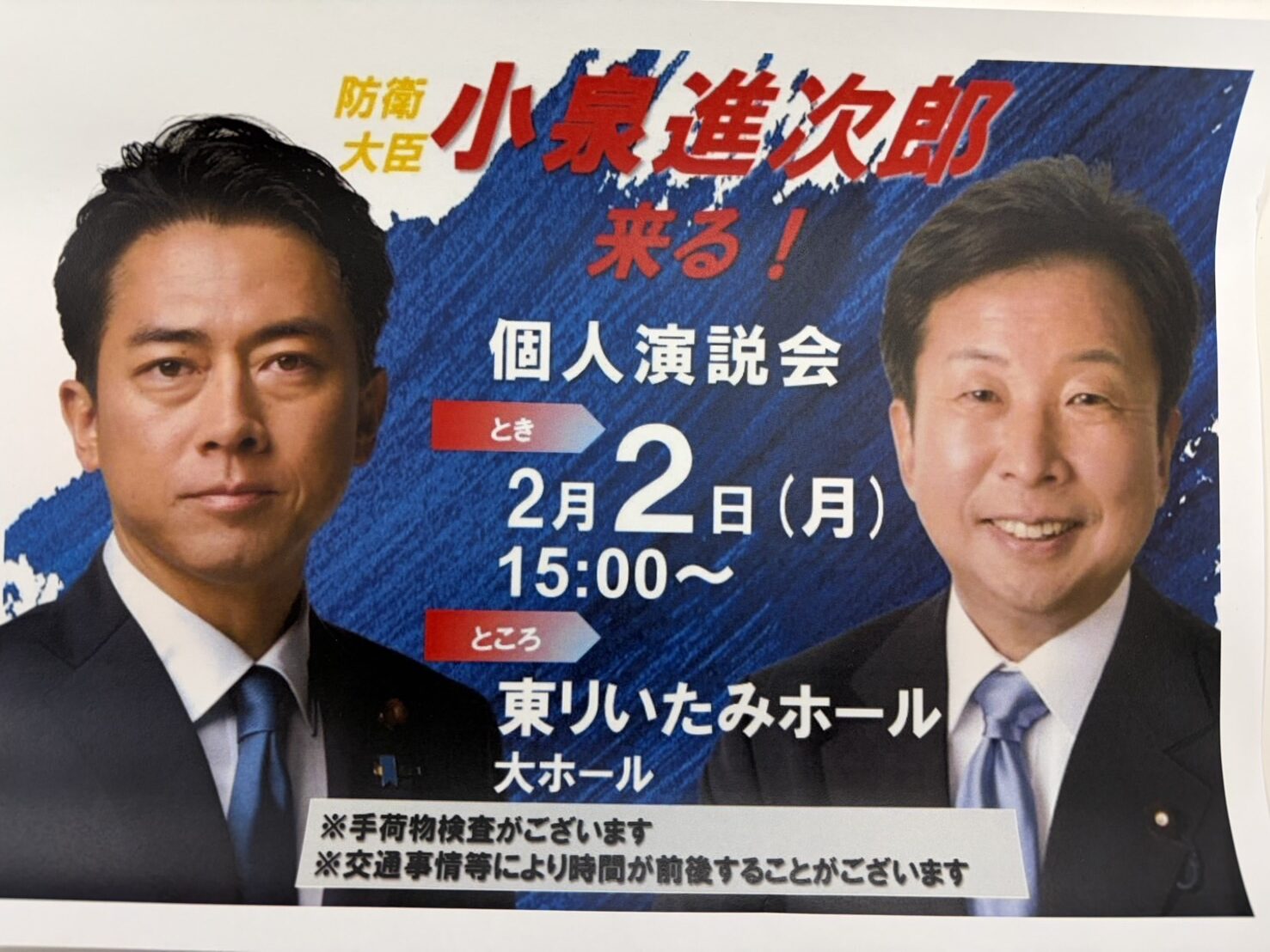 2026.01.29 お知らせhyogoptf 大串まさき氏個人演説会 小泉進次郎氏 応援に来ます。 兵庫県理学療法士連盟は第51回衆議院議員総選挙にて 大串まさき氏 を応援しています。 日時:2月2日(月)15:00~ 場所:東リいたみホール(伊丹市立文化会館) 防衛大臣 小泉進次郎氏 が応援に駆けつけます。 大串まさき氏、小泉進次郎氏の両氏は「リハビリテーションを考える議員連盟」のメンバーであり、私たちの職能を深く理解され、多くの政策に尽力をいただいております。 大串まさき氏の個人演説会へのご参集、ご支援をよろしくお願いします。