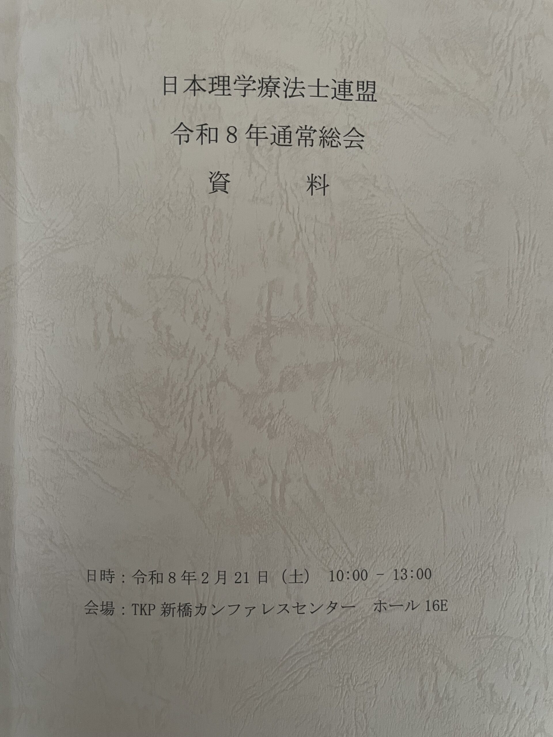 令和8年2月21日(土)に開催されました 日本理学療法士連盟 総会 に参加しました。