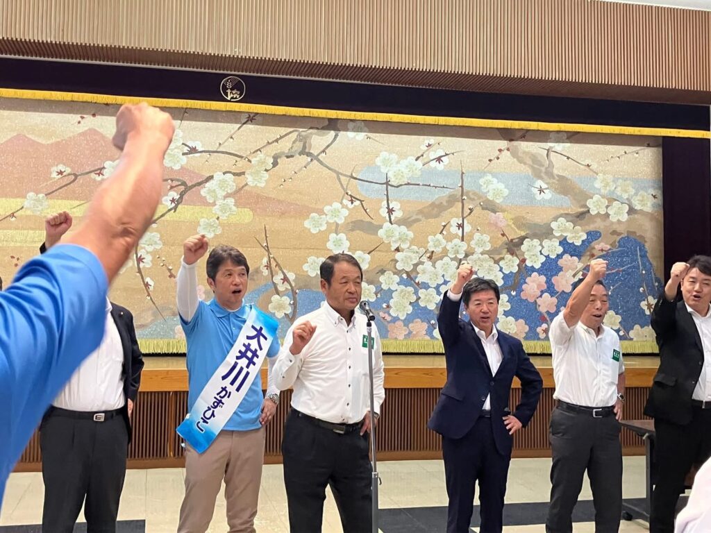 大井川候補演説@JA水戸本店内 選挙戦も本日まで‼️ 茨城県理学療法士連盟は全力で応援しており、最終日にも関わらず高橋靖水戸市長を始め来賓の方や大勢の県民が会場に集まっています。 期日前投票も本日まで…