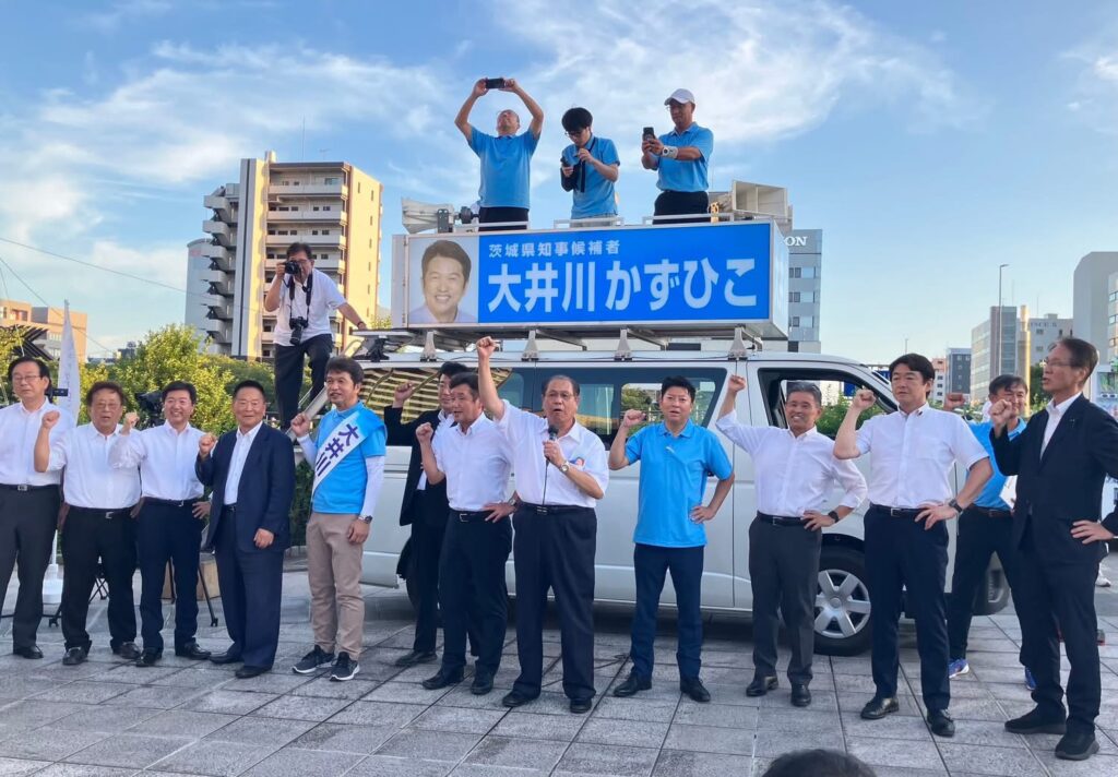 大井川候補街頭演説が友部公民館にて開催茨城県知事選挙も終盤戦 大井川候補への期待は日を増すごとに増えています👍 会場へは田所嘉徳衆議院議員と上月良祐参議院議員が駆け付けています。 茨城県が更なる高みを…