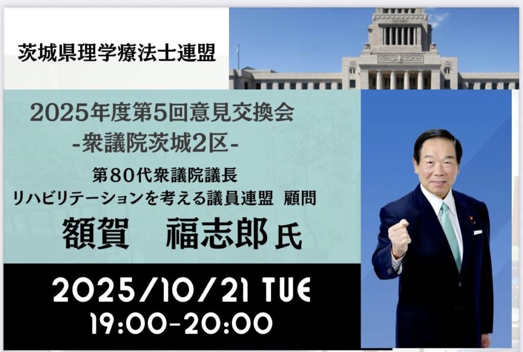 第5回茨城県理学療法士連盟意見交換会 茨城2区選出、リハビリテーションを考える議員連盟の顧問で第80代衆議院議長でありますの額賀福志郎氏との意見交換会を行います。 地元のために活躍している額賀氏であり…