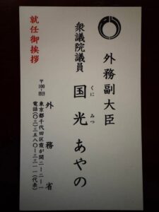 国光議員と写真が撮れなかったのは残念だが貴重な名刺を頂きました