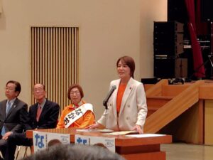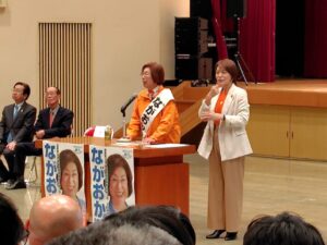 境町中央公民館にて、ながおか桂子候補の演説会に参加しました😄