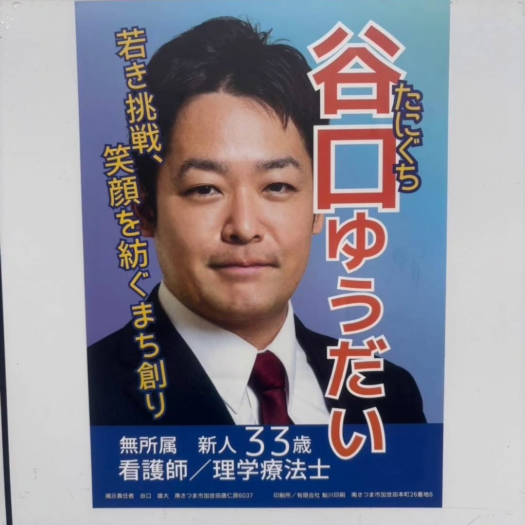2025.11.15 お知らせkagoshimaptf 南さつま市議会議員候補 「谷口ゆうだい」を応援 鹿児島県理学療法士連盟は、南さつま市議会議員候補である、若き理学療法士の「谷口ゆうだい」を応援しております! 「自分たちの未来は自分たちで!」