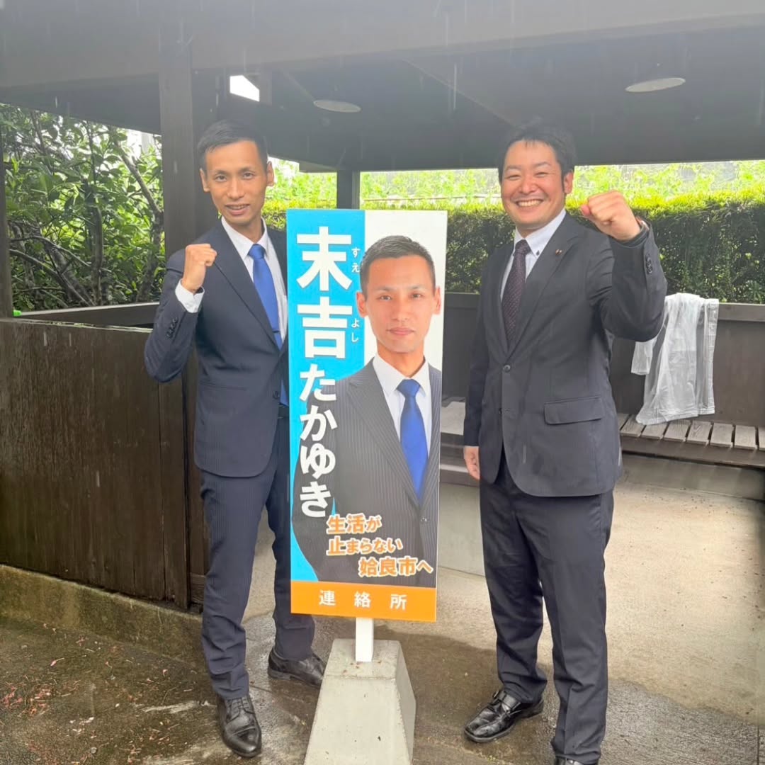 2026.04.18 2026.04.19 お知らせkagoshimaptf 「末吉たかゆき」氏を応援① 鹿児島県理学療法士連盟は姶良市議会議員選挙において、言語聴覚士でもある「末吉たかゆき」氏を応援してります! 雨の中、湯地副会長、赤崎女性局長、そして南さつま市議で理学療法士の谷口先生が応援に行って参りました!