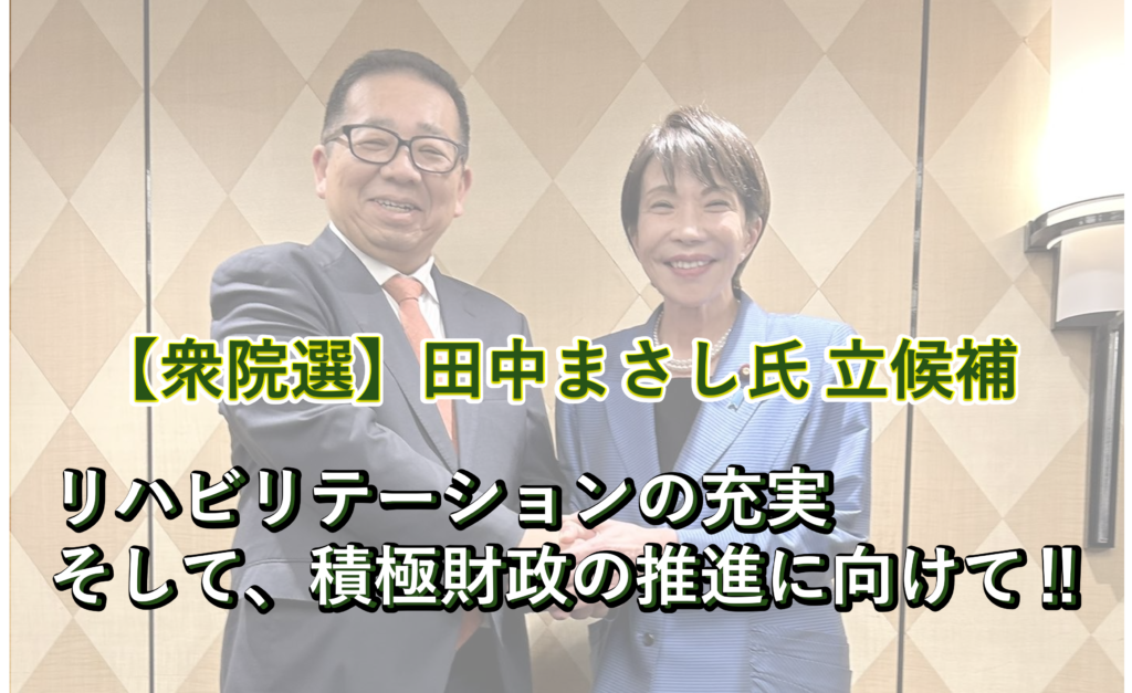 お知らせ 2026年2月8日に投開票が行われた第51回衆議院議員総選挙において、理学療法士の田中昌史 氏が、自由民主党の比例代表東京ブロックにて見事当選を果たしました。 田中氏は、元参議院議員としての経験を持ち…