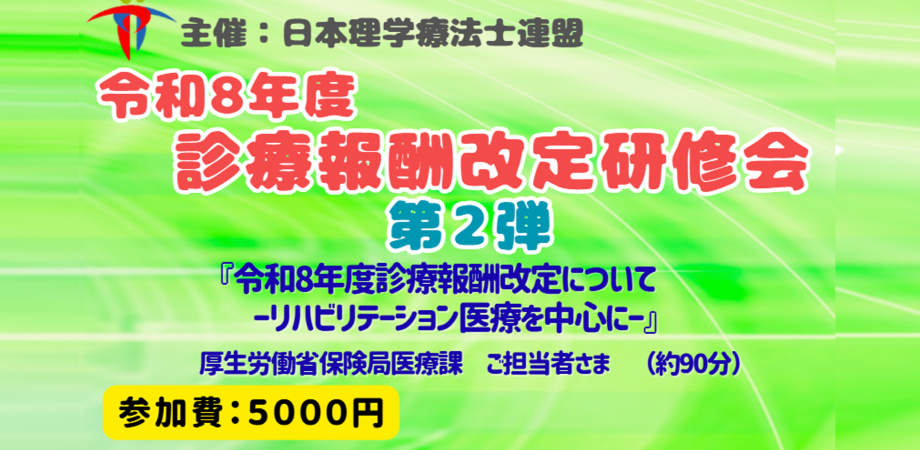 タイトル:令和8年度 診療報酬改定研修会 第2弾「令和8年度診療報酬改定について ーリハビリテーション医療を中心にー」