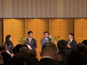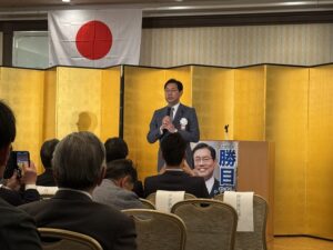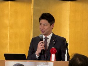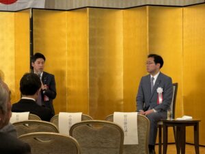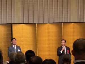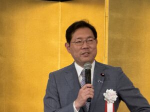 その後特別公演として立党70周年自民党新ビジョン策定本部起草委員長 中曽根康隆代議士の話がありました。内容の濃い話で経済安全保障推進本部事務局長として、国際社会が激動する中で、戦後国際秩序の安定の恩恵を受けて発展した日本が今こそ国際秩序を構築する側に立たなければならないと語られ、安全保障推進法案では、「有事ではなく平時からの備えの強化」が大事になると語られました。