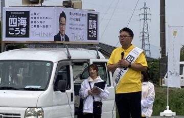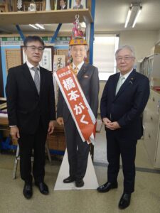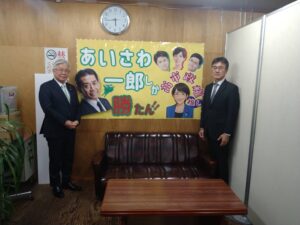 加藤勝信候補、橋本がく候補、あいさわ一郎候補の事務所を訪問し、夕刻から山下たかし候補の個人演説会に参加をしていただきました。