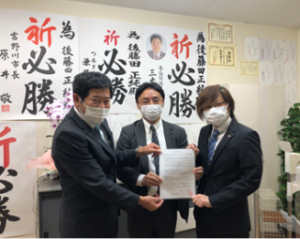 今回、後藤田正純後援会事務所において後藤田氏と政策協定を締結することが出来ました。