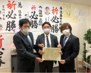 また徳島県理学療法士連盟から推薦状、為書きをお渡しすることが出来ました。