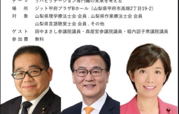 お知らせ 8月29日(日)オンラインにて「田畑裕明衆議院議員と小川克巳参議院議員との意見交換会」が開催されました。当日は、富山県内のリハビリテーション専門職を中心に120名近くの参加があり、たくさんのご意…