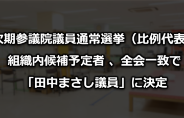 お知らせ この度、2025年7月20日(日)に投開票が行われました参議院選挙におきまして、当連盟の組織内候補である田中まさし候補の選挙結果についてご報告いたします。 田中まさし候補は、比例代表より立候補し、リハ…