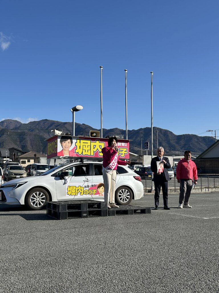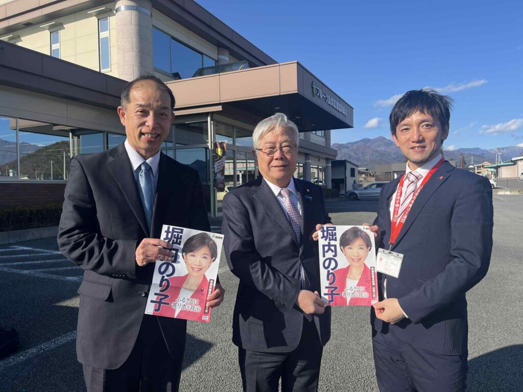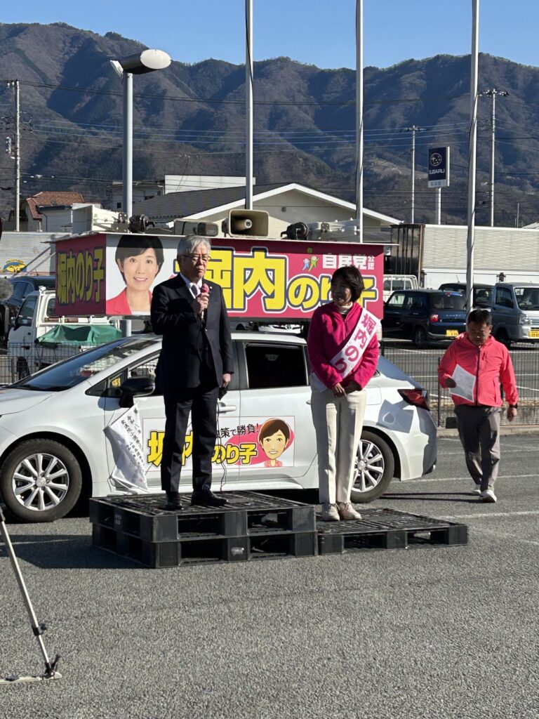 1月30日(金)、リハビリテーションを考える議員連盟の事務局長である小川かつみ参議院議員(理学療法士)が、山梨県甲州市の演説会場まで 堀内候補の応援に駆けつけてくださいました。