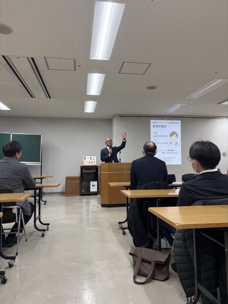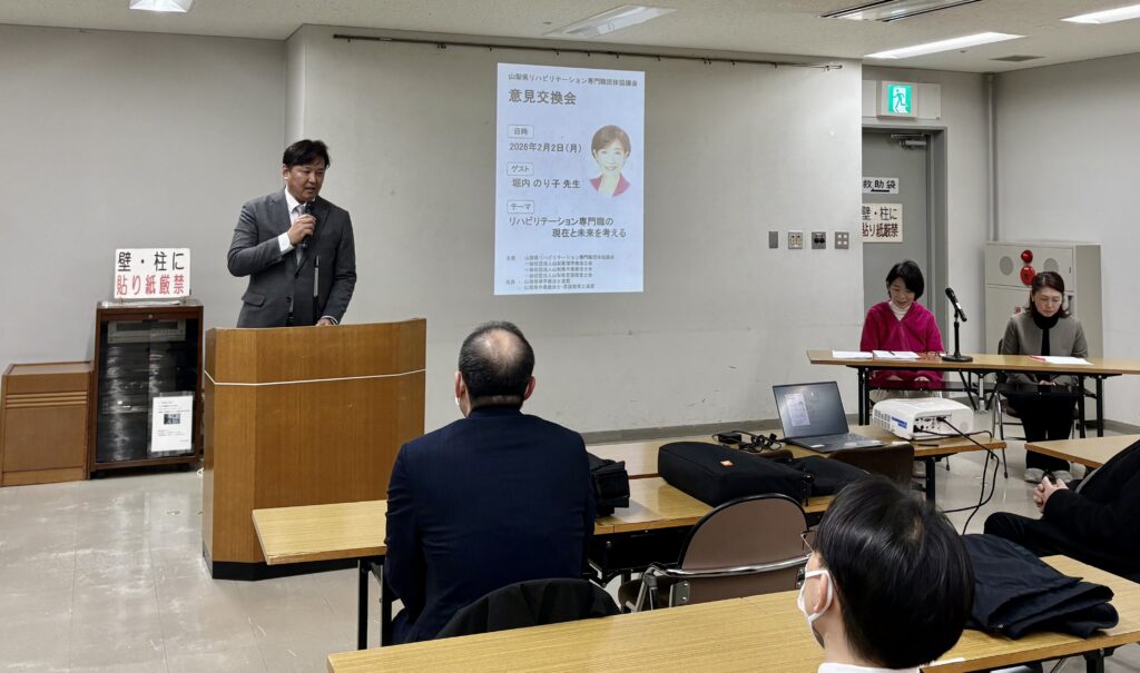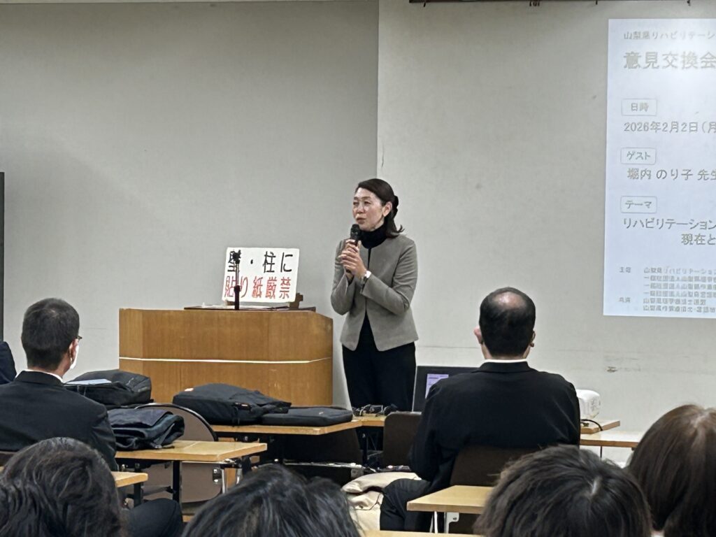 2026月2日2日(月) 山梨2区 堀内のり子候補をお招きし、「リハビリテーション専門職の現在と未来について考える」をテーマに、山梨県内の理学療法士・作業療法士・言語聴覚士70名以上と意見交換を行いました。